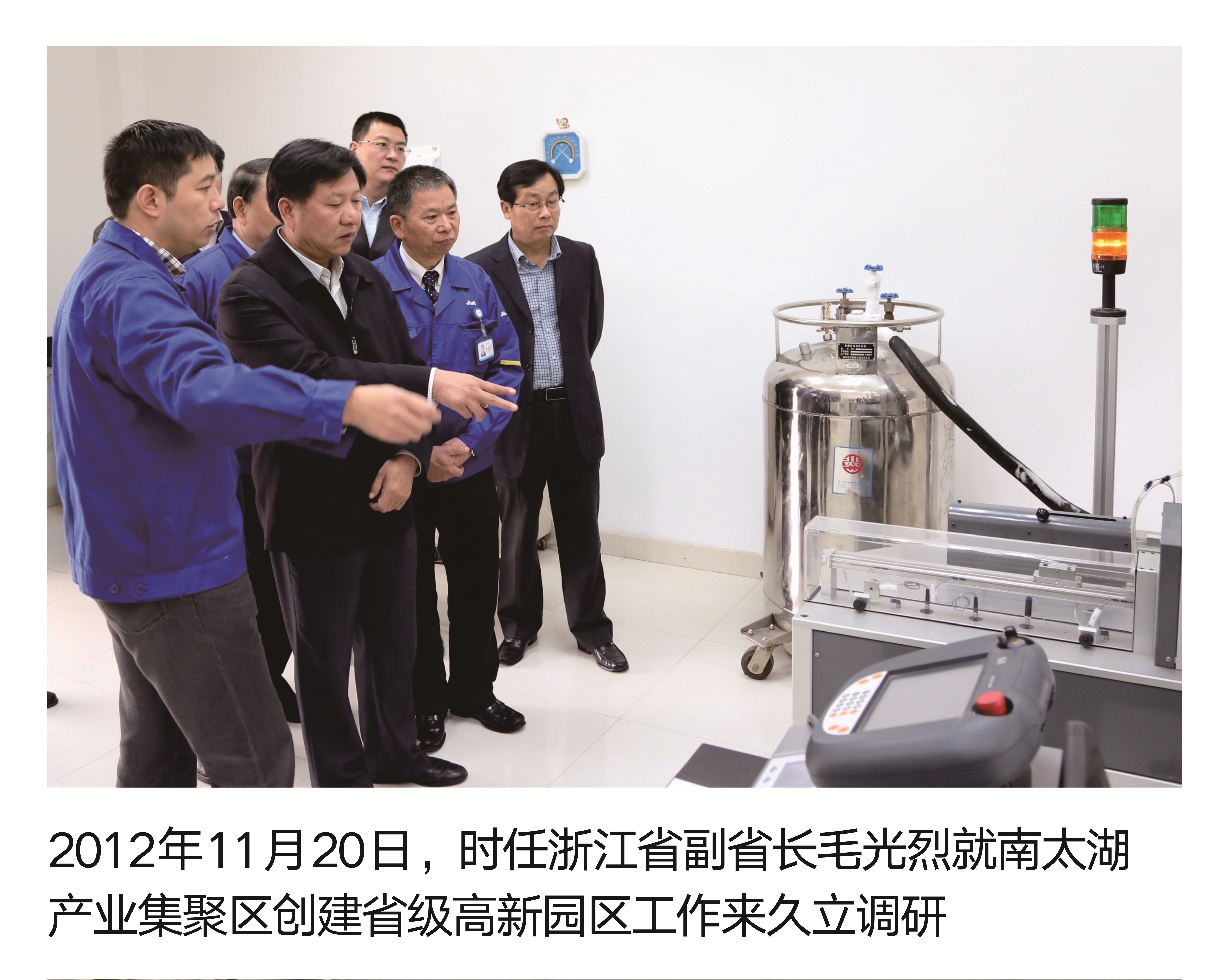 2012年11月20日,时任浙江省副省长毛光烈就南太湖工业集聚区建设省级高新园区事情来js1996调研