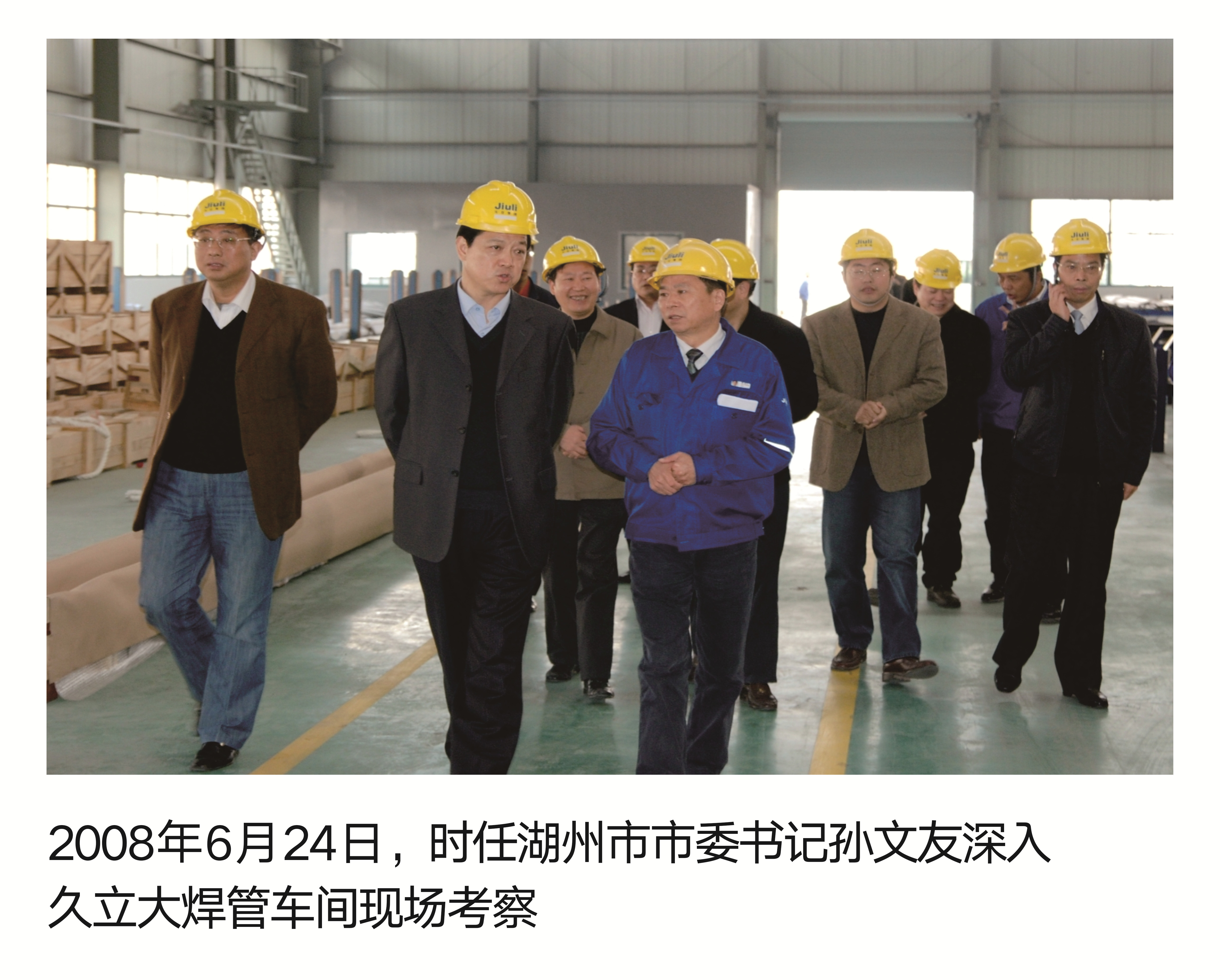 2008年6月24日,时任湖州市市委书记孙文友深入js1996大焊管车间现场考察