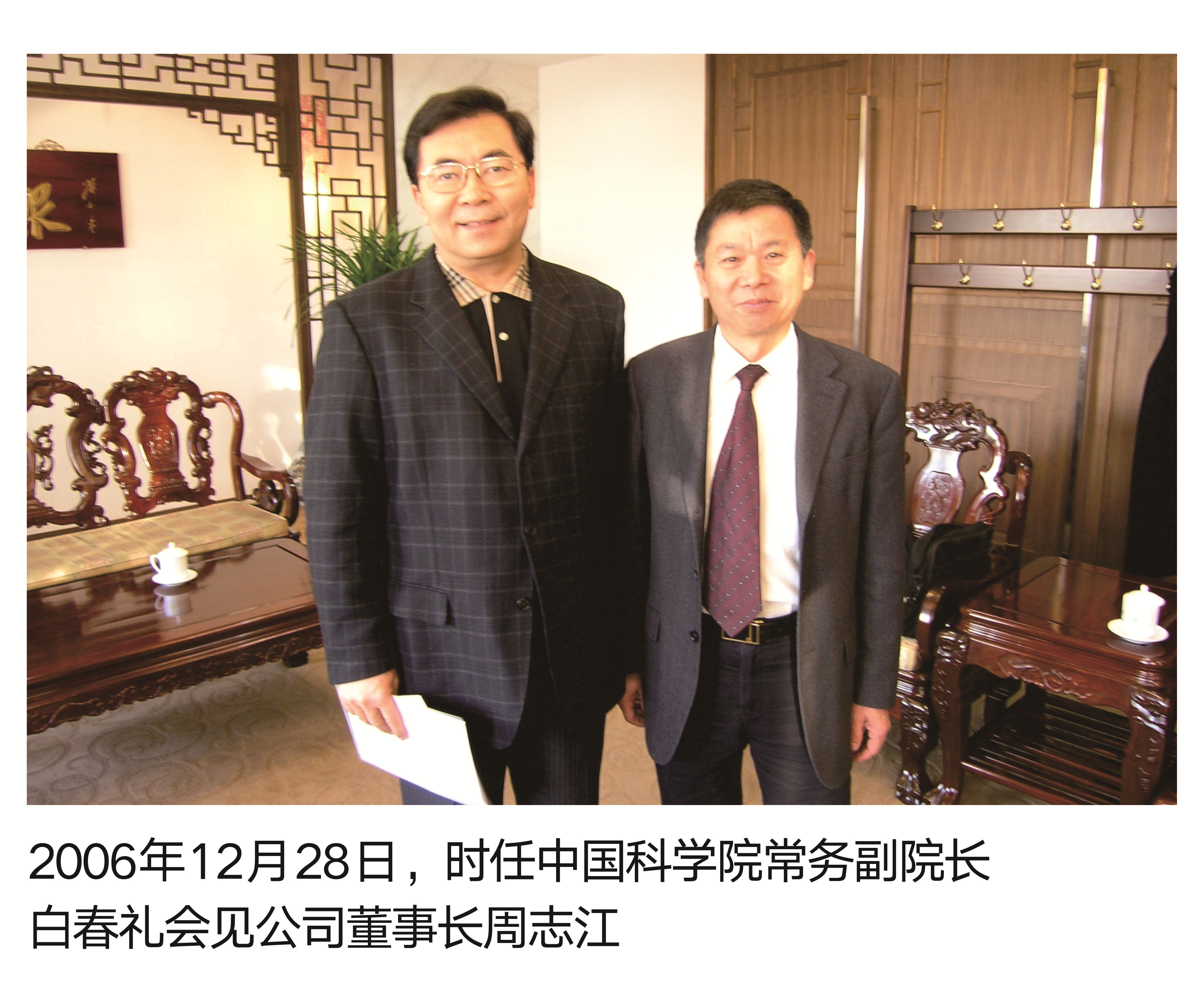 2006年12月28日,时任中国科学院常务副院长白春礼回见公司董事长周志江