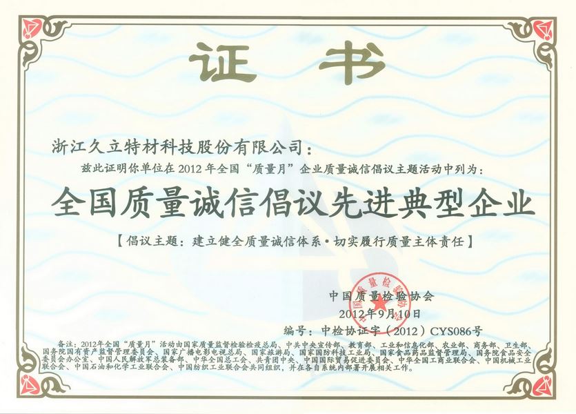 天下质量诚信建议先进典范企业
